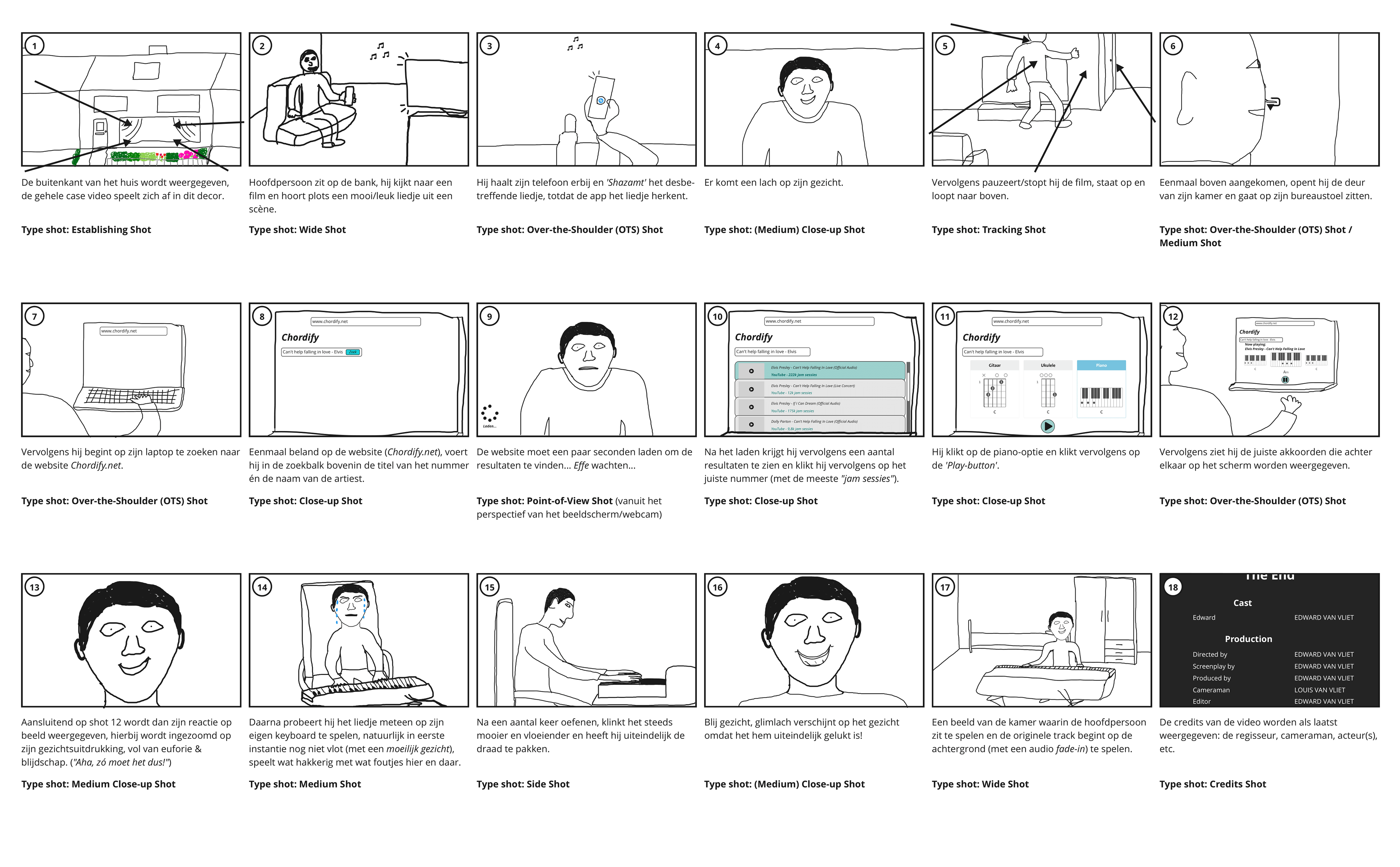 The video shows the main character — a young man who regularly plays the keyboard (though not yet a professional) and has a deep love for music — using the website Chordify.net. Chordify.net is a platform where musicians and music enthusiasts can share and access chords for songs. Founded about twelve years ago, Chordify began as a tool to convert songs into chords. It functions almost like karaoke for musicians, allowing you to play along with any track. On this partly Utrecht‑based startup’s online platform, users can find chords for virtually any song on guitar, ukulele, or piano. In recent years, Chordify’s popularity has grown significantly, especially during the first and second COVID‑19 lockdowns, when the platform was widely used.