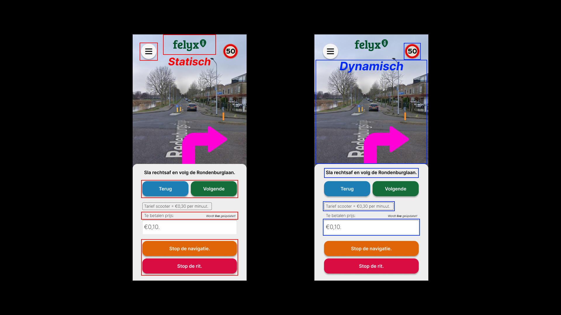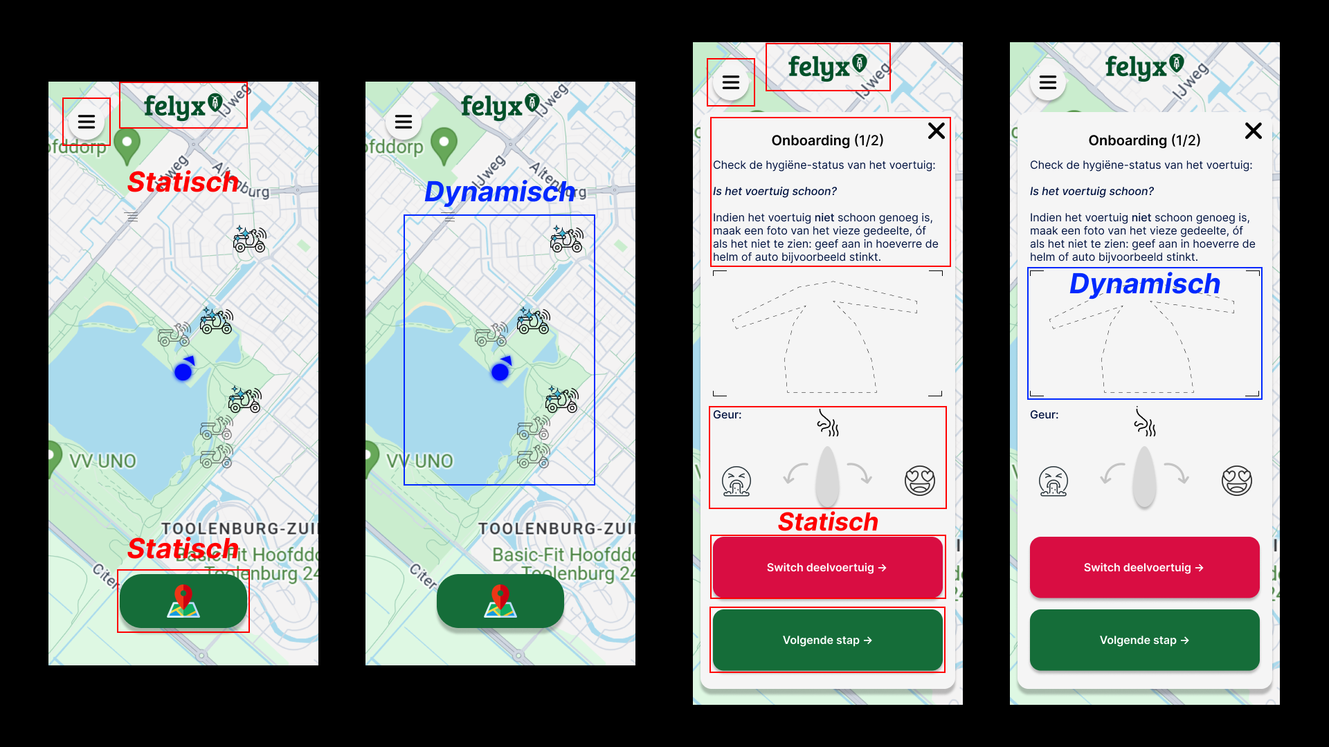Static design (or 'Statisch' in Dutch) is shown in red, and dynamic content (or 'Dynamisch' in Dutch) is shown in blue.