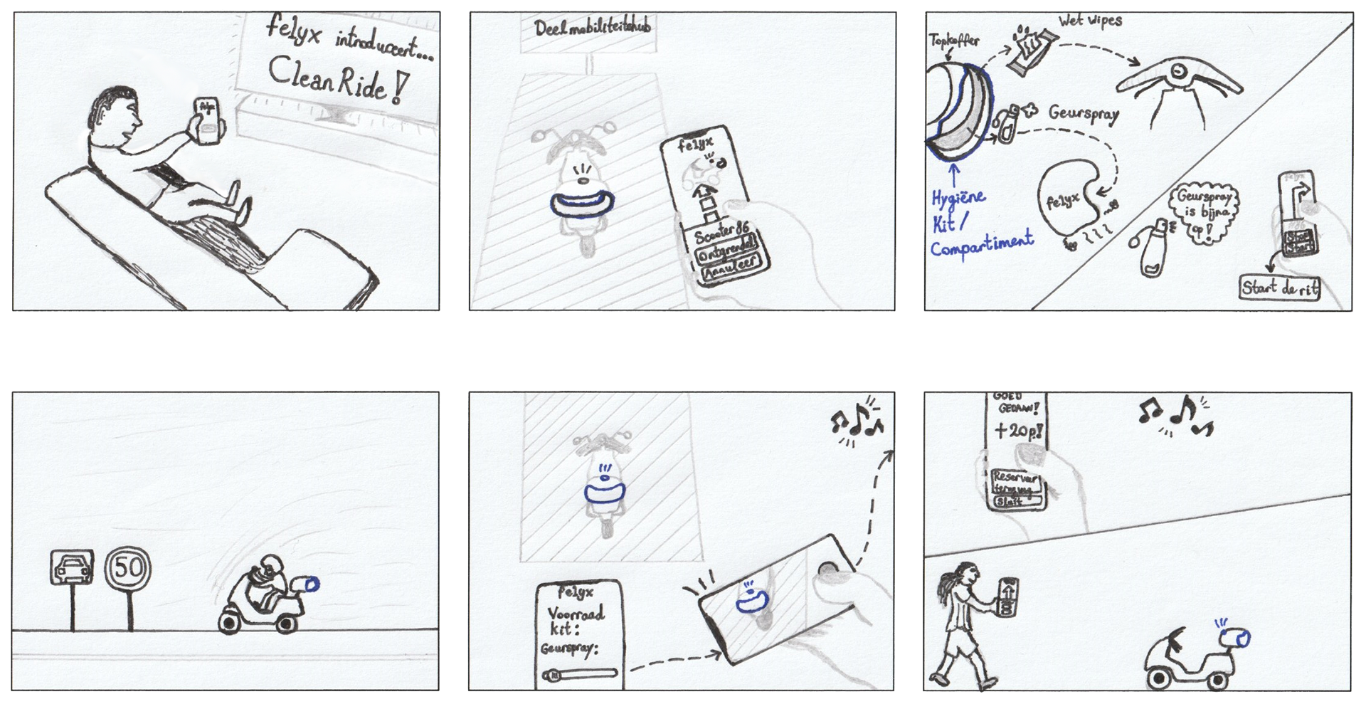 This CleanRide project emphasized the need for innovation and collaboration between different stakeholders to realize a sustainable and accessible (shared) mobility future. The solutions were presented to the client Vervoerregio Amsterdam (VRA), where the strong visual support and intuitive functionalities of the app and the hygiene kits were positively received.