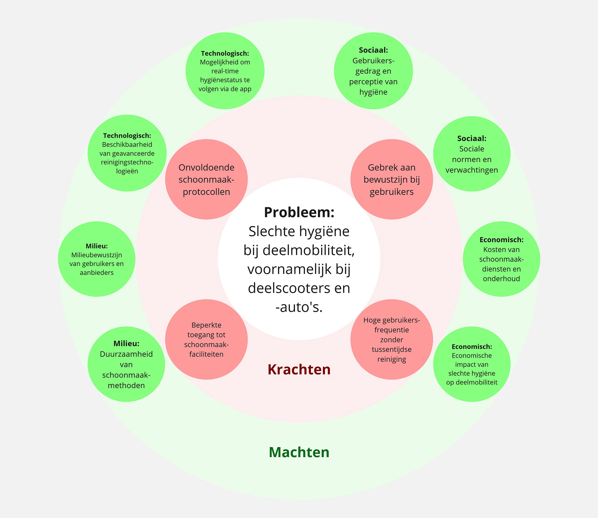 Concept map (Denkkaart in Dutch): The purpose of this concept map is to create a visual overview that helps in understanding the central problem and identifying relevant influences (the forces and factors behind the problem).