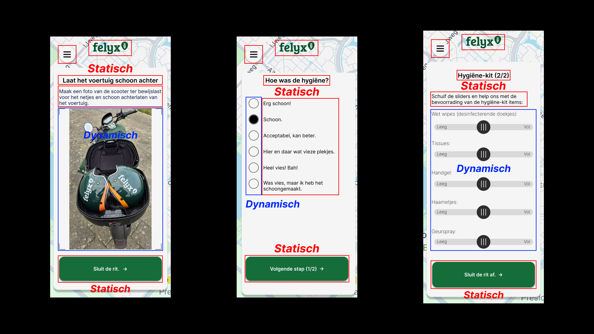 During my minor Service Design, I worked on a challenging and innovative project focused on improving hygiene within shared mobility in the Amsterdam region, commissioned by Vervoerregio Amsterdam (a regional public transport authority responsible for public transport concessions, infrastructure, and mobility planning across 14 municipalities). This project, with my final concept called CleanRide, aims to increase user-friendliness and build trust among users of shared scooters and cars through smart technology and practical tools. The solution takes the form of an extension to the existing apps of shared mobility providers (such as Felyx), designed specifically to improve hygiene standards in shared mobility.