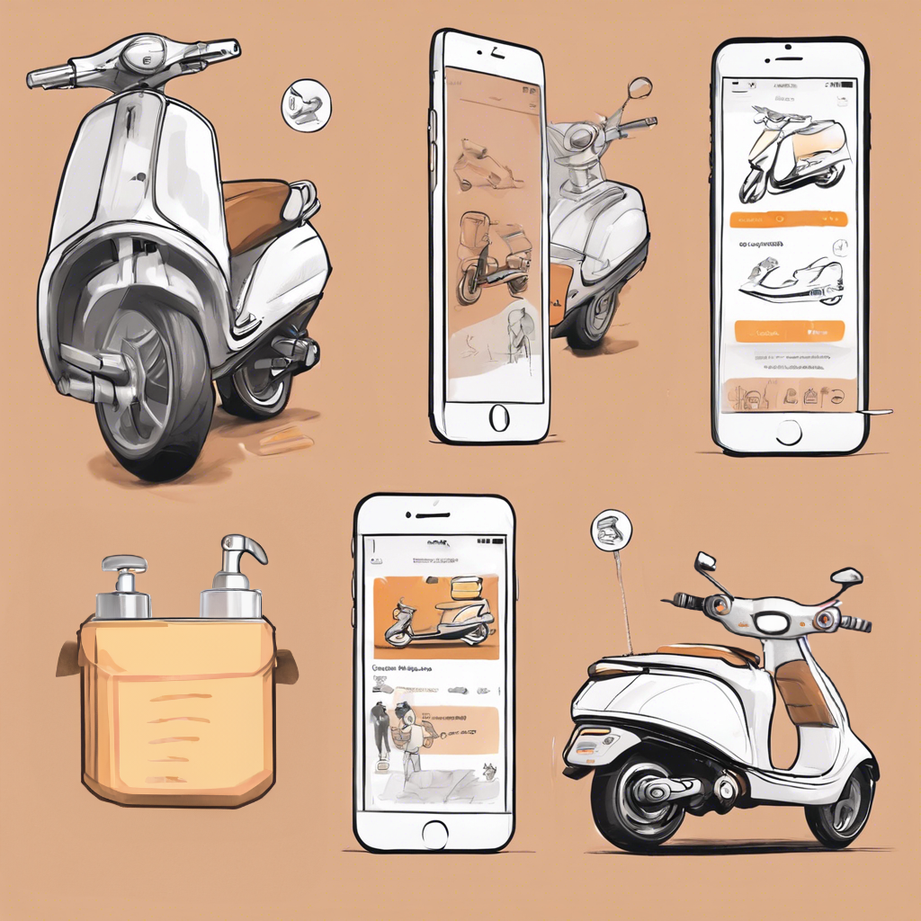Solution visualization: Hygiene‑kit concept visualized partly through sketches (the kit itself and the user interface of the accompanying app) and partly created with Generative AI in Adobe Photoshop (mainly the scooters).
