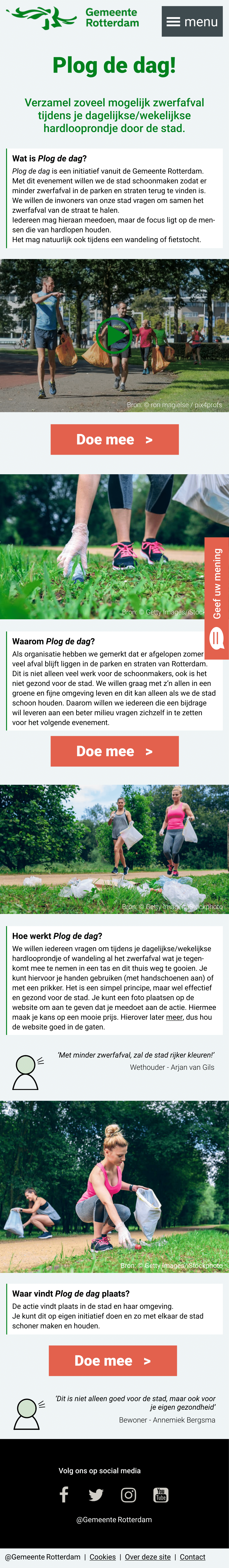 The mobile version of the website for the Plog de Dag! campaign, which I designed.