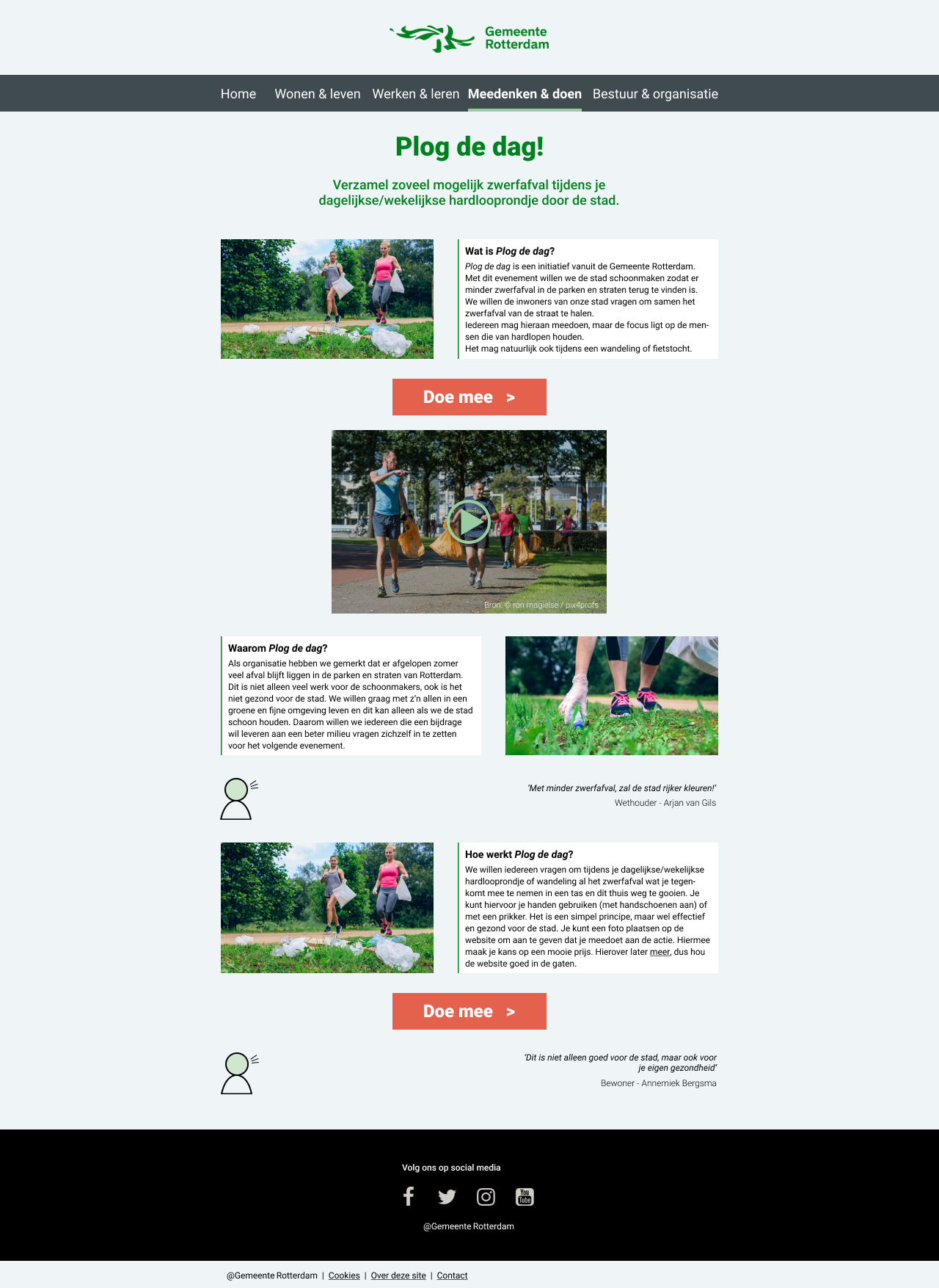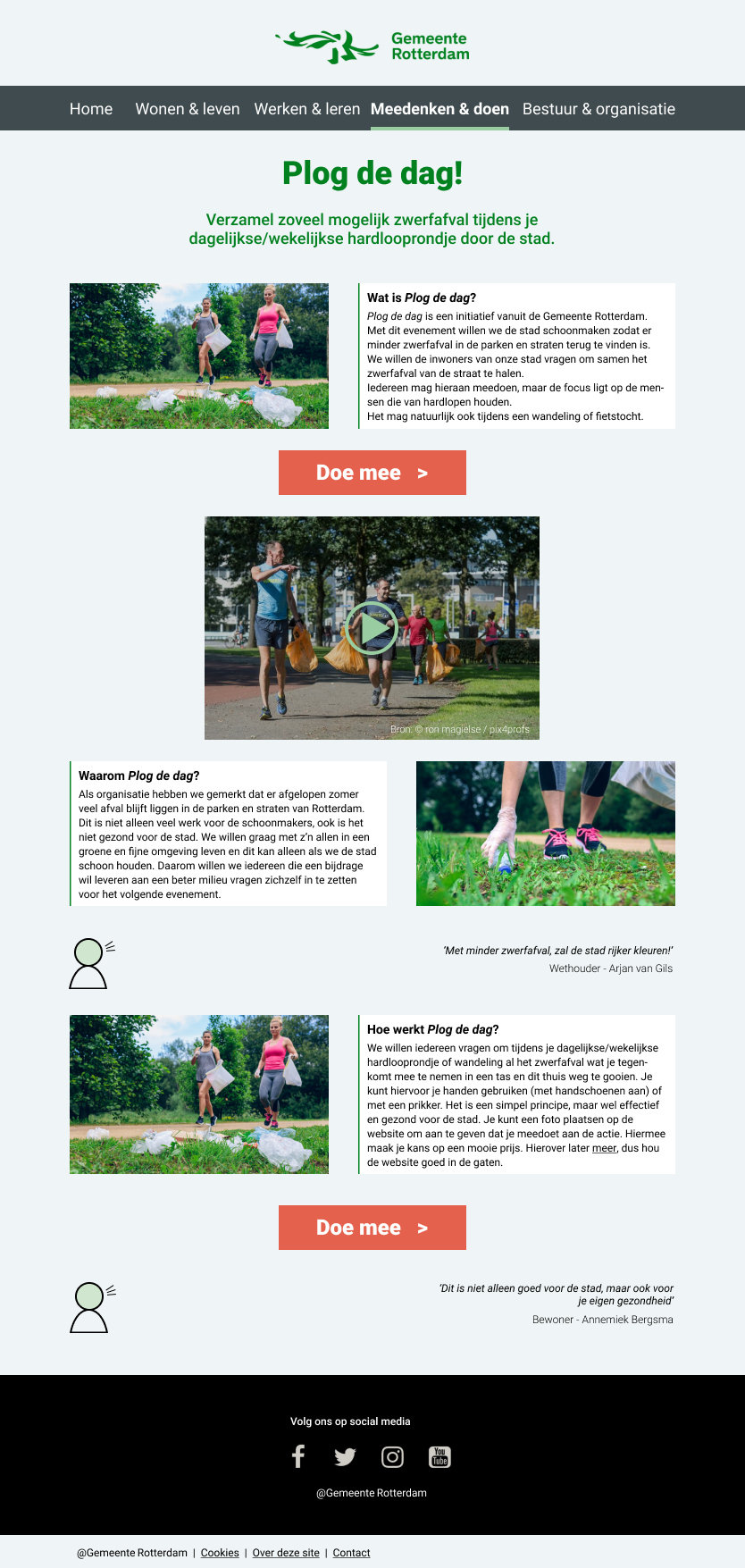 And finally, the desktop version of the website for the "Plog de Dag!" campaign, which I designed.