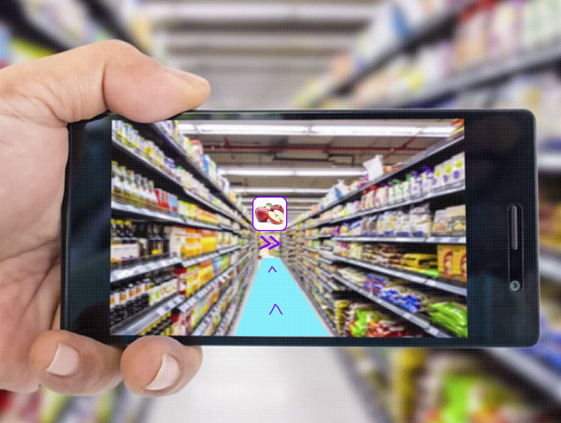 In the image above, I have visualized my concept "Speedy Errands AR." The user/customer is guided to the next product on their shopping list — in this case 'apples'.